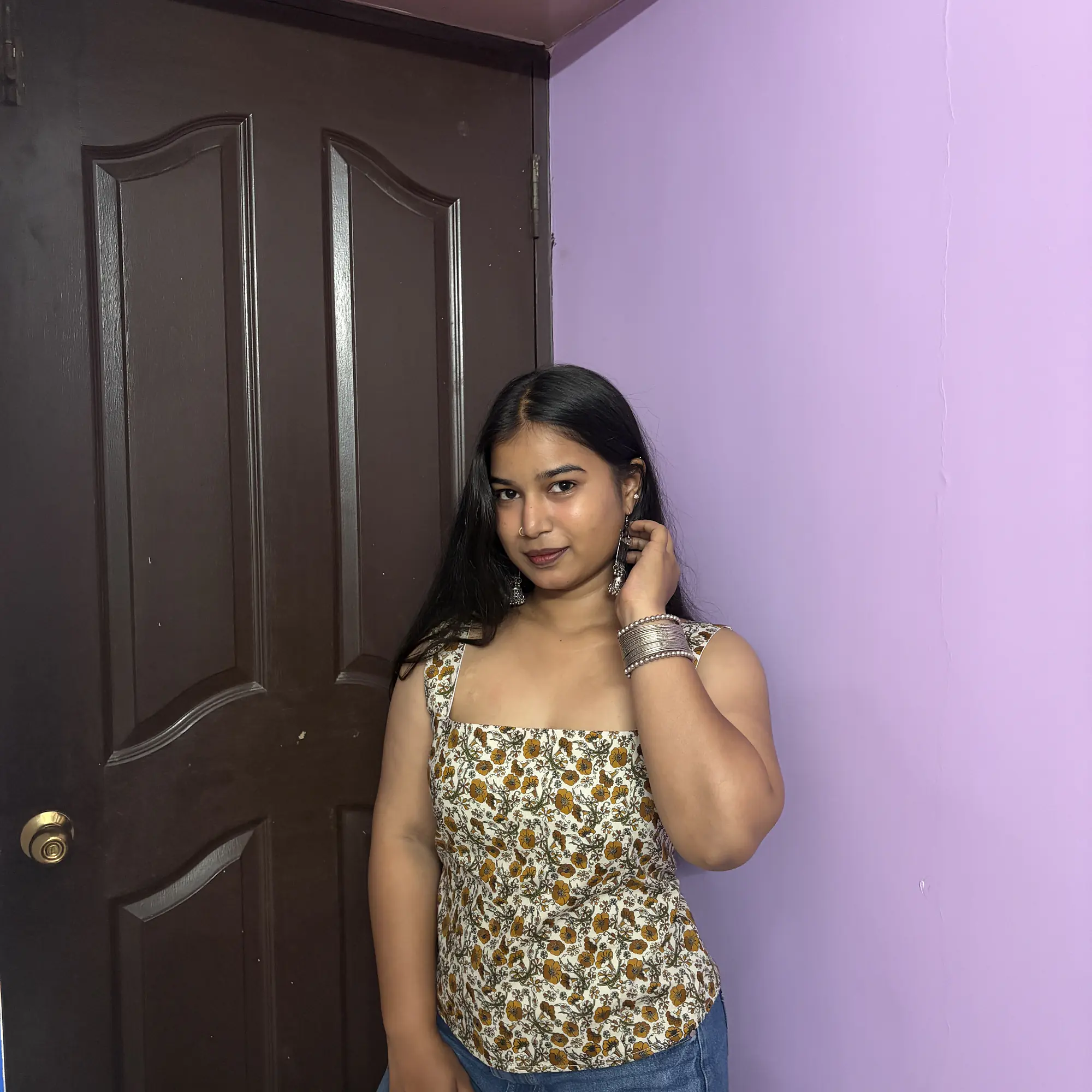 This floral printed top captures a soft vintage charm with its delicate mustard blooms set against an off-white base. Designed with a flattering square neckline and a structured fitted bodice, it enhances the silhouette while maintaining comfort. The subtle peplum flare adds a feminine touch, making it perfect for effortless everyday styling. Crafted in breathable cotton fabric, this top pairs beautifully with denims or skirts for a relaxed yet polished look. Ideal for brunch dates, casual outings, or a chic daytime ensemble.