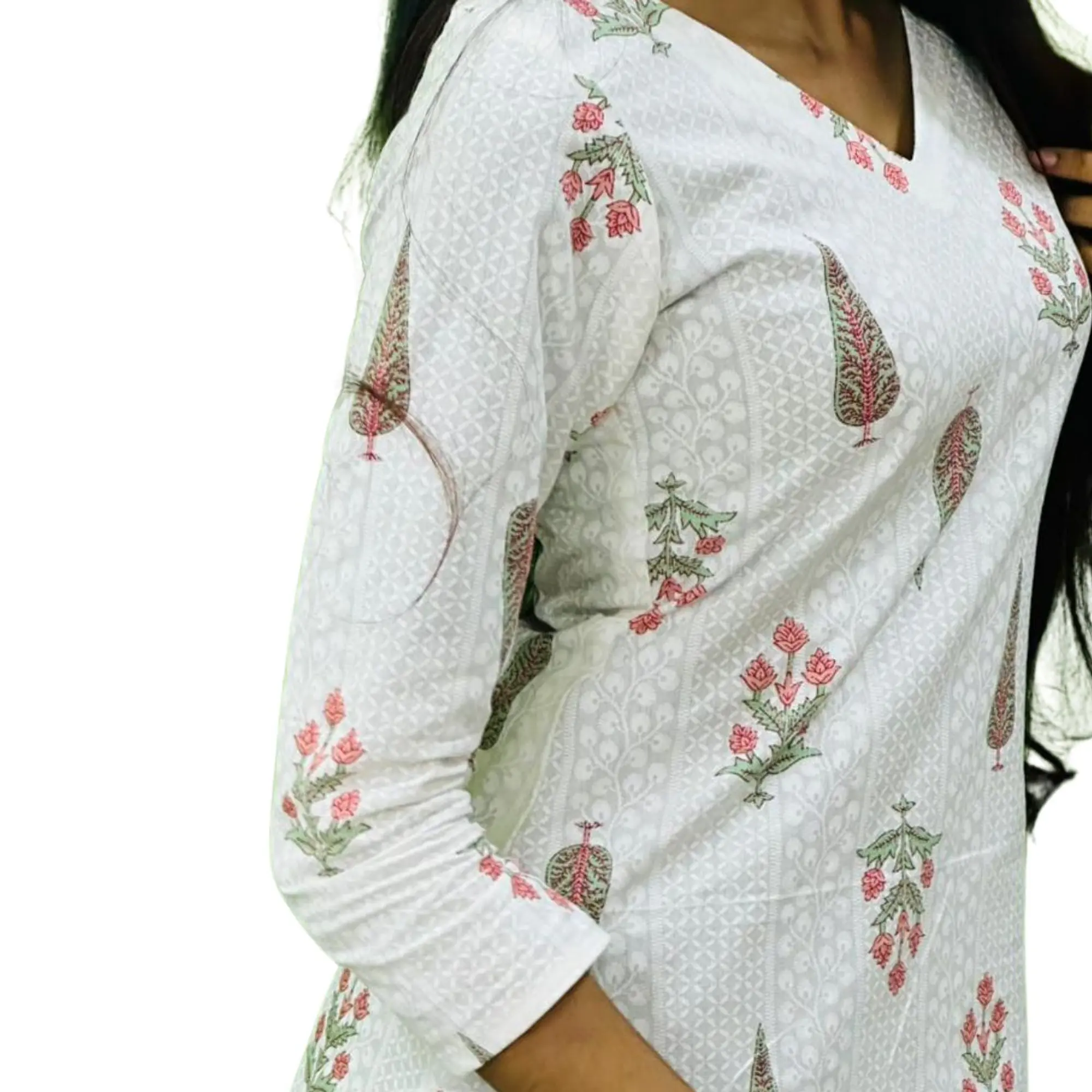 A delicate blend of subtle prints and soothing tones, this kurti is designed for effortless elegance. The soft ivory base paired with floral motifs creates a calm, refined look, while the comfortable silhouette makes it perfect for everyday wear. Simple, graceful, and timeless—an essential for understated style.